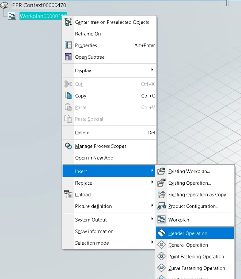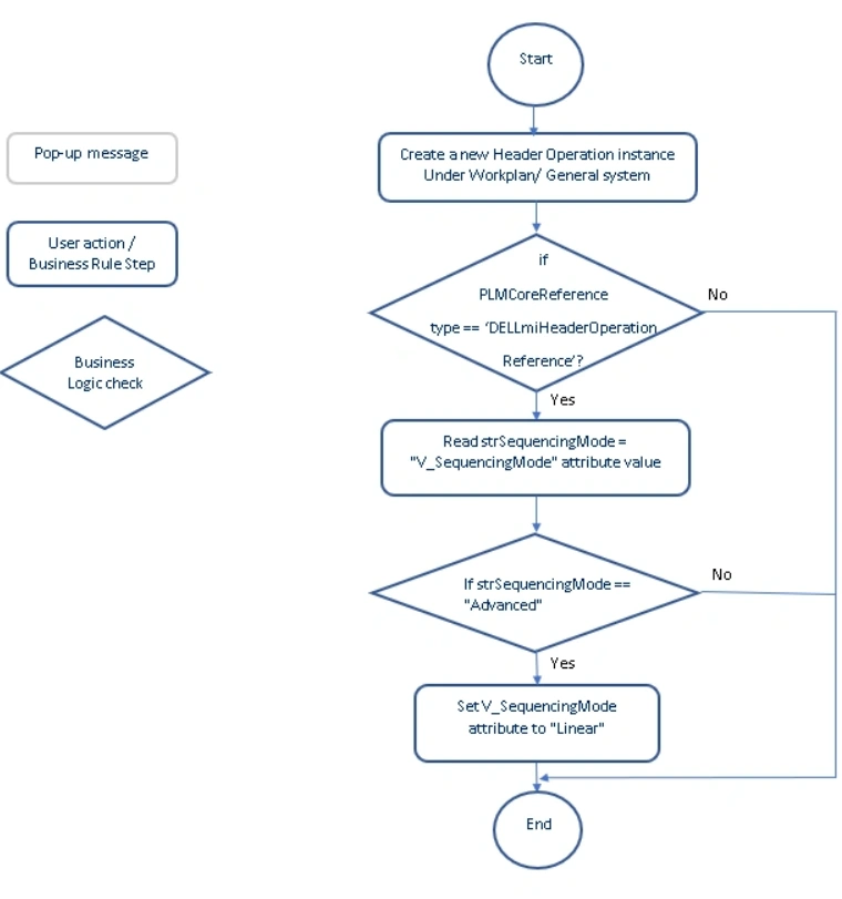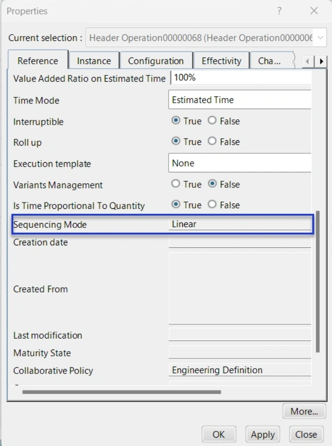 The below example describes how we can initialize a 'V_SequencingMode' attribute value on a Header Operation reference when it gets instantiated under a workplan object.