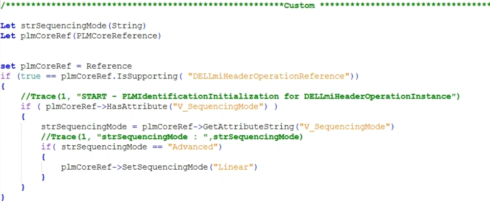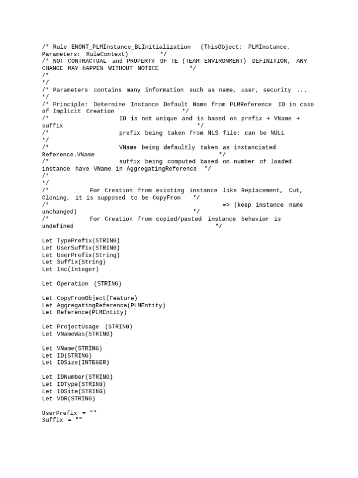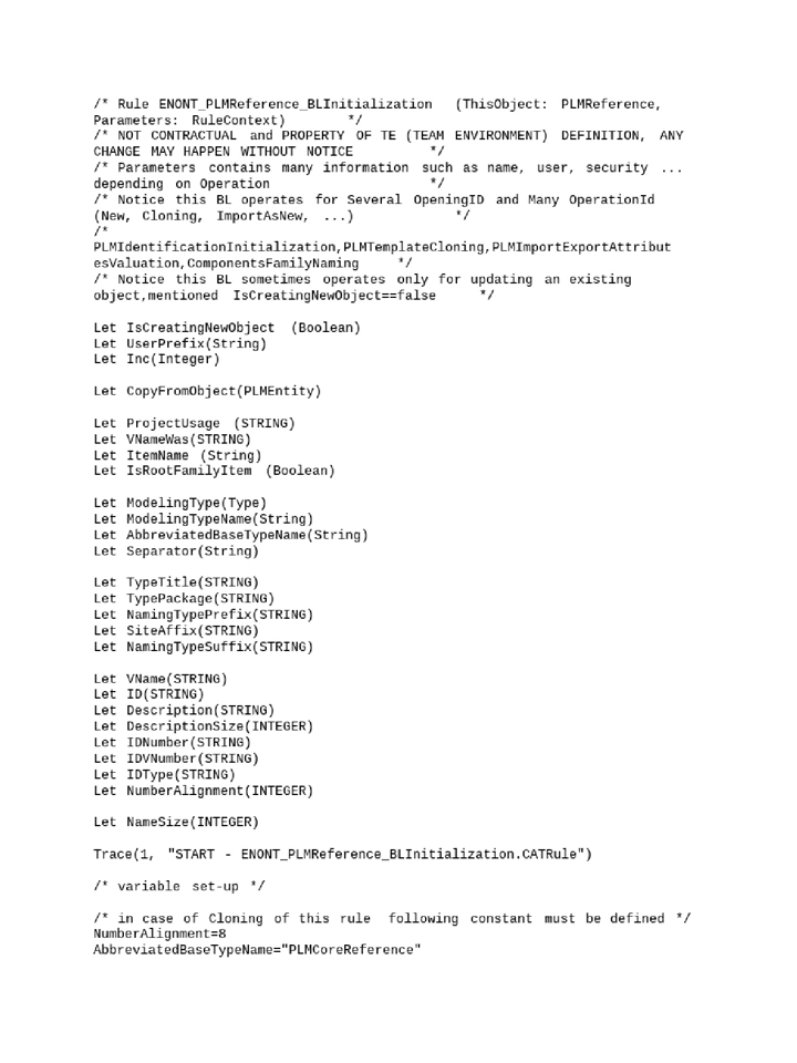 Note: Please copy and paste the custom code at the bottom of this file to your existing 'ENONT_PLMInstance_BLInitialization.CATRule' in the installation folder.