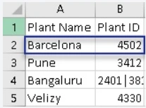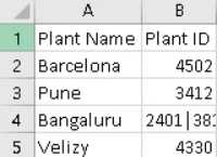 The Plant Id values for different plants are saved in a second column of a csv file. Please refer below image for input csv file.