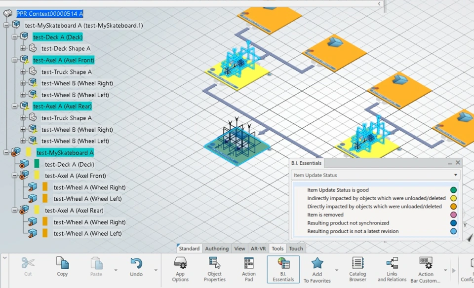 Here, the scope links were present between Eng. Item ‘test-Wheel A’ and Mfg. item ‘test Wheel A’. When Eng. Item ‘test-Wheel A’ is replaced (all four instances in EBOM) by its new revision ‘Wheel B’, the scope links between Eng. Item ‘test-Wheel A’ and Mfg. item ‘test-Wheel A’ break.