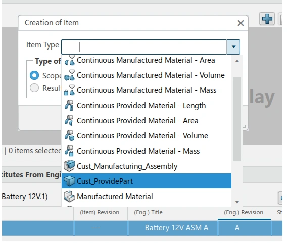 - Using the Engineering Release app to create an EBOM for a vehicle part.