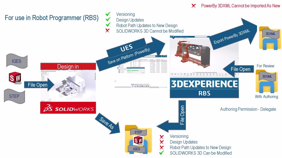 In this video, I'll demonstrate how to add kinematics to a model using the Kinematics wizard. You will see how to add forward kinematics, home positions, speeds and acceleration parameters as well as ports to mount and a TCP. I will also discuss different methods for importing and using 3D SOLIDWORKS data in the 3DEXPERIENCE platform using PowerBy and File Open.