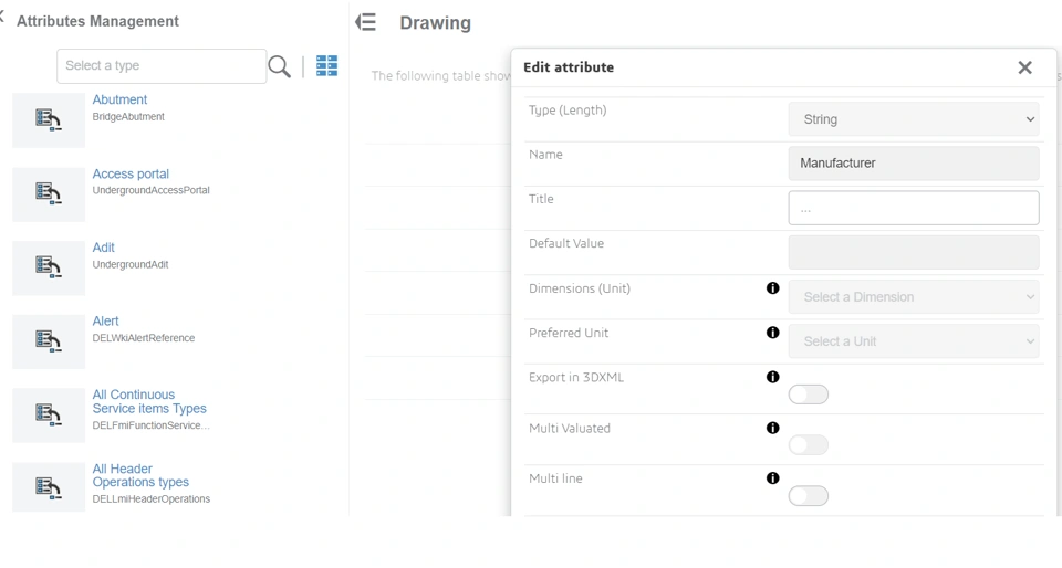 2. Go to Attribute management>Drawing
