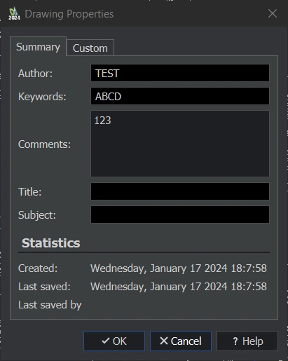 There is a list of properties associated with .dwg file under File>Properties or there is an attributes information added for blocks in drawing file. DraftSight properties and 3DEXPERIENCE attributes both are used to store all kinds of useful information for files including, descriptions, part numbers, revisions etc..