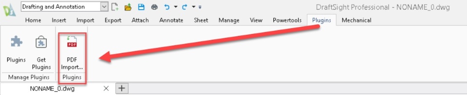 Prior DraftSight 2021 it was required to purchase a separate plugin to import PDF files in DraftSight. The plugin is available to download on Graebert website: https://www.graebert.com/in/cad-software/plugins-for-draftsight/