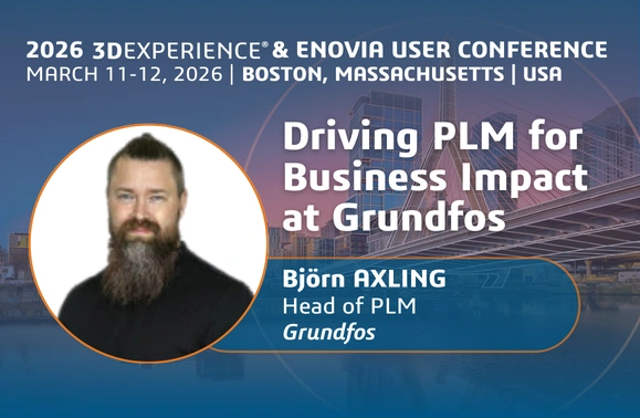 Join us at the 2026 3DEXPERIENCE & ENOVIA User Conference in Boston, MA, USA! Discover how Grundfos has embarked on a foundational PLM business transformation journey during Björn AXLING's session, "Driving PLM for Business Impact at Grundfos."