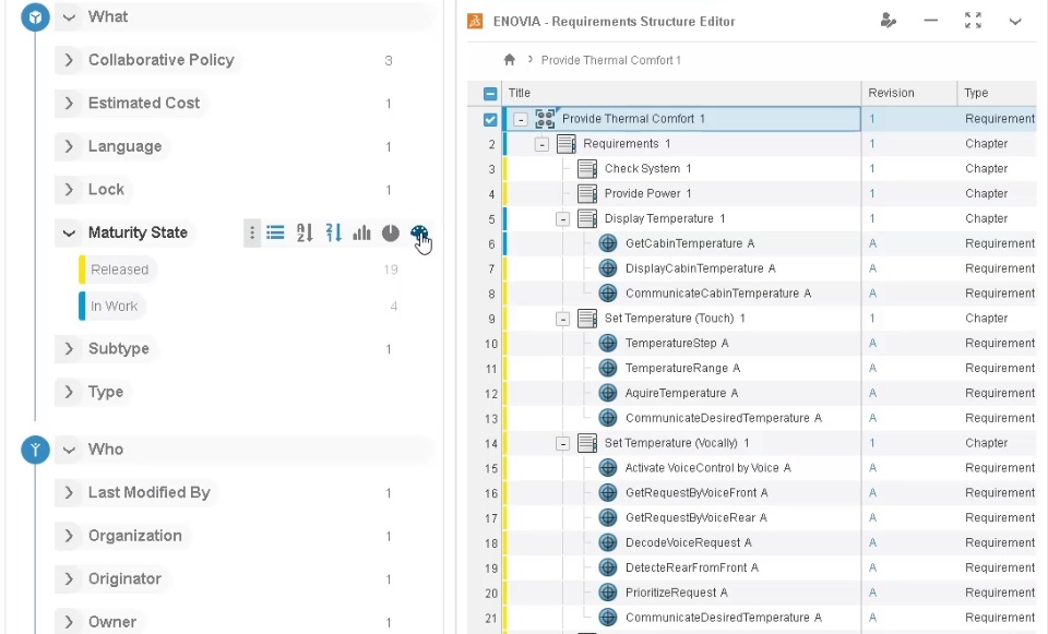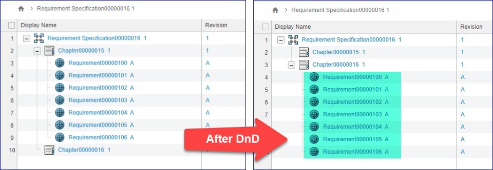 • The effectivity of requirements is maintained, but only when the target parent have partially or exactly the same Configuration Context, as source parent.
