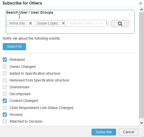 Improve collaboration and deeper awareness of requirements changes using subscription for others