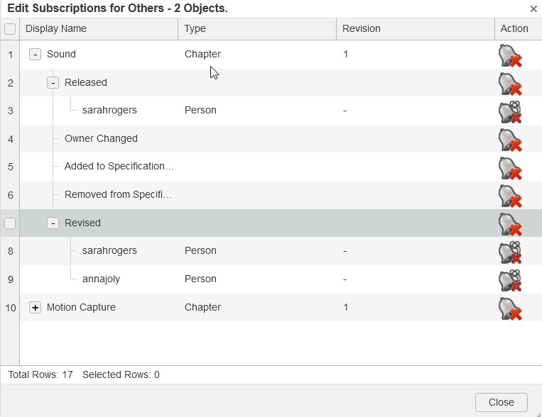 • ‘Edit Subscriptions for Others’ lets you expand and view subscriptions by object, event type, and person.