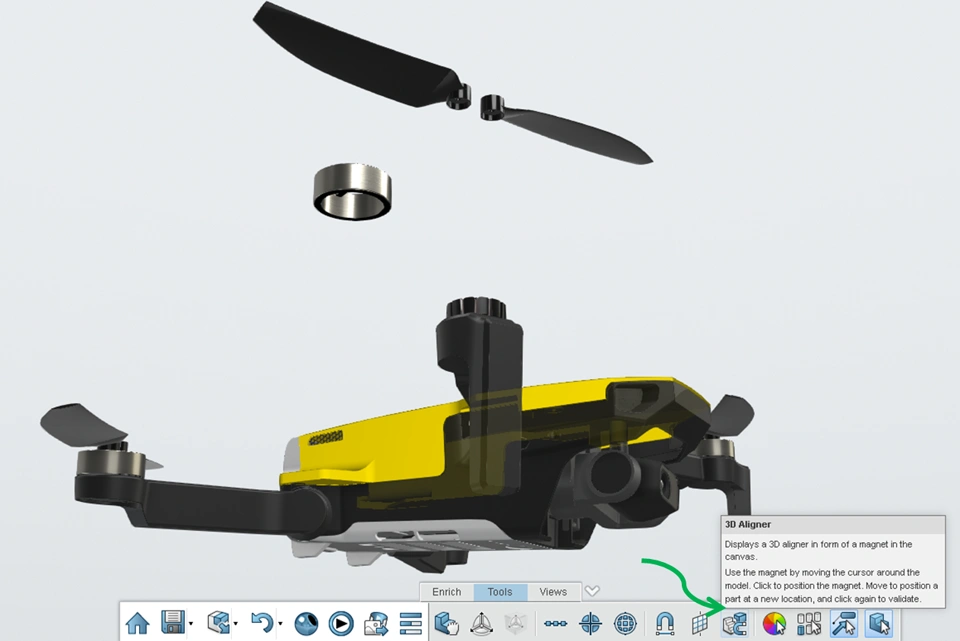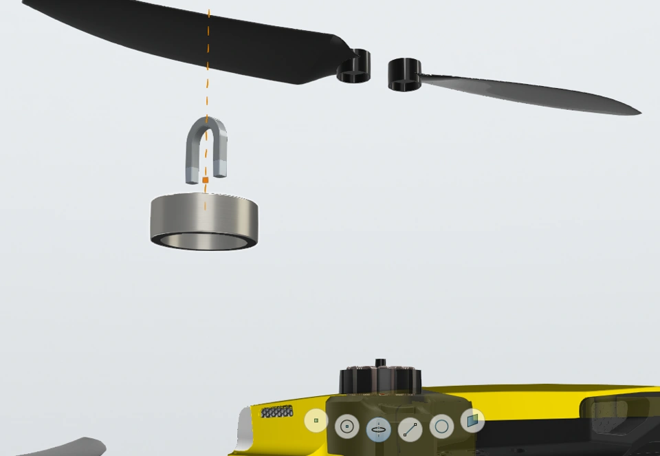 Then move along the axis to find a spot to place the rotor. If the mouse cursor deviates from the axis, the axis may disappear. Just move closer to the housing to find it again😅