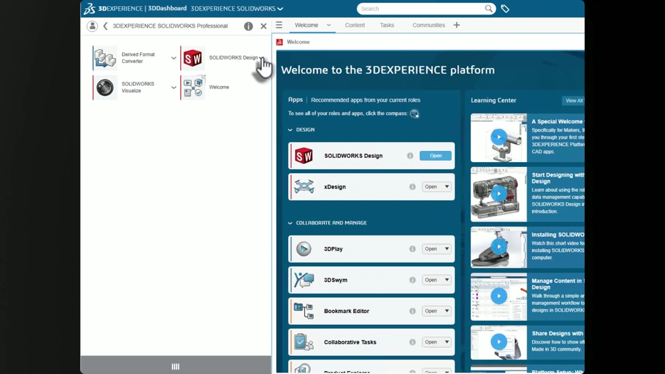 After the platform update is complete, relaunch the apps and connect to the 3DEXPERIENCE platform. Then you can save new or updated content to the platform.