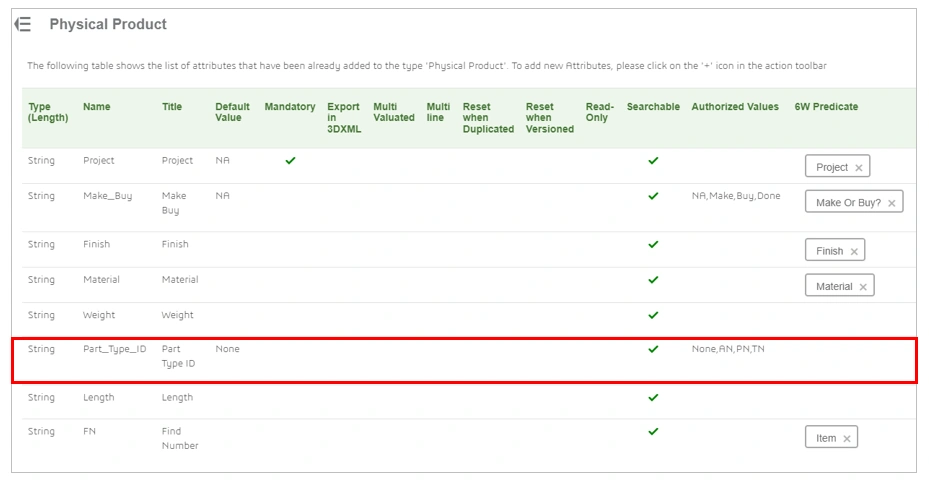 1. A Physical Product attribute “Part Type ID” has been defined that contains 4 authorised values “None, AN, PN, TN”. The default value of the attribute is “None”. This value will auto populate for each Physical Product if the owner does not select one of the genuine part type values AN, PN, or TN.
