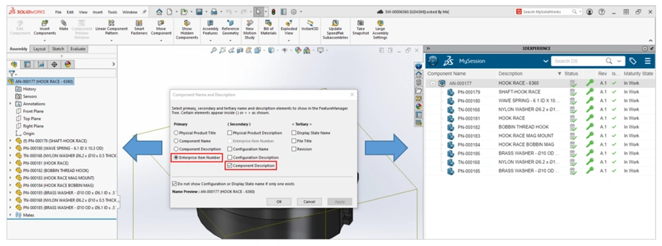 In a situation where the Enterprise Item will serve as the primary identifier for a part or assembly, the EIN can be configured to be automatically copied to the Physical Product Title. This synchronization ensures high visibility of the EIN across the 3DEXPERIENCE platform, specifically within SOLIDWORKS design workflows.