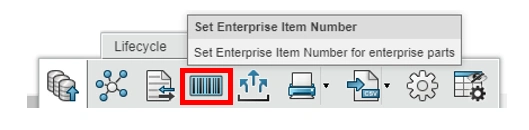 With the EIN deployed SOLIDWORKS users can set the EIN for parts and assemblies using the Set Enterprise Item Number command on the MySession toolbar.