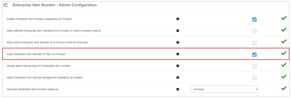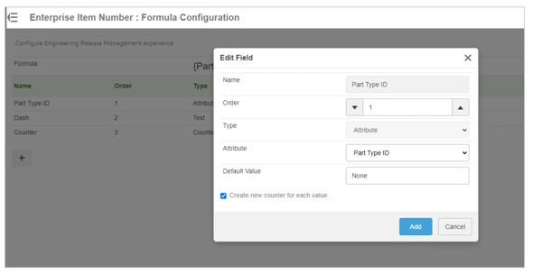 4. Enterprise Item Number : Formula Configuration provides the ability to construct the EIN formula based on a series of fields for example counter, text, and Physical Product attributes.