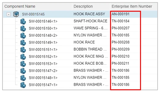 Assigning an Enterprise Item Number to a Component in SOLIDWORKS