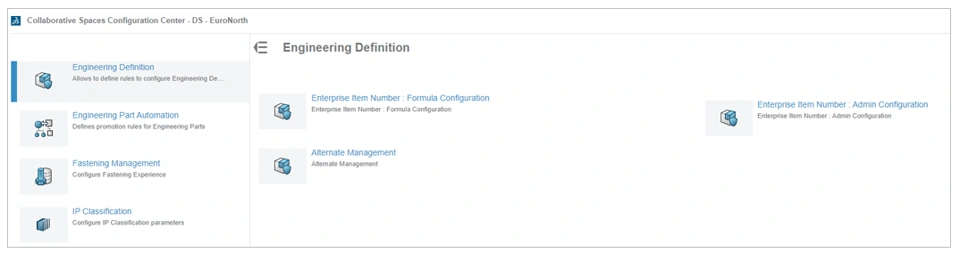 2. Only one EIN can be set for each 3DEXPERIENCE platform. The EIN is configured by a platform administrator in the Engineering Definition section of the Collaborative Spaces Configuration Center.