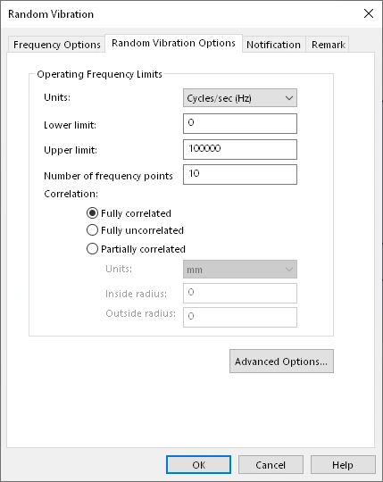 You can find more detailed information about these options as well as others in the Online Help articles “Random Vibration” and “Random Vibration – Advanced.”