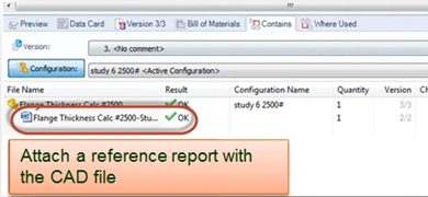 After completing a simulation, the simulation engineer can create additional supporting documents such as reports and videos and integrate those documents into the simulation workflow process as well. Figure 14 shows a simulation report referenced with the CAD file used for the simulation.