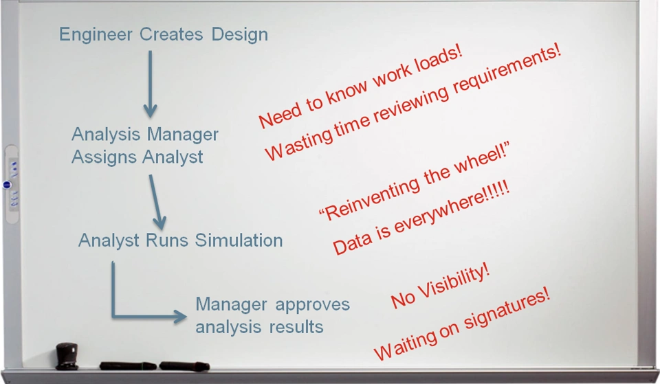 There are data management tools capable of integrating the simulation workflow into the main engineering workflow where simulation files can be managed for different versions of the design and simulations as well as the type of simulation. However addressing these needs requires more than just setting up a workflow. An intelligence framework needs to be integrated into the workflow process that allows simulation users to quickly look up a CAD model for any analysis information and be able to reuse existing data as a template or reference for doing a new analysis. Some simulation tools also offer unique and intuitive functionality (like library features for loads, fixtures, and virtual connectors) that provide a powerful platform for reusing information.
