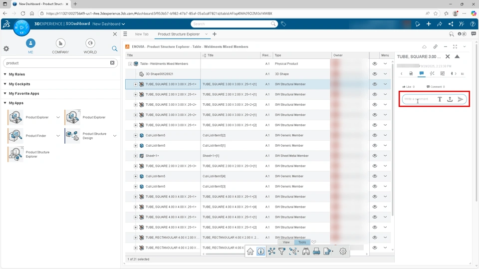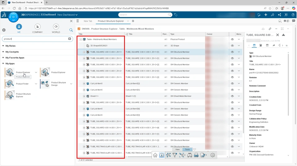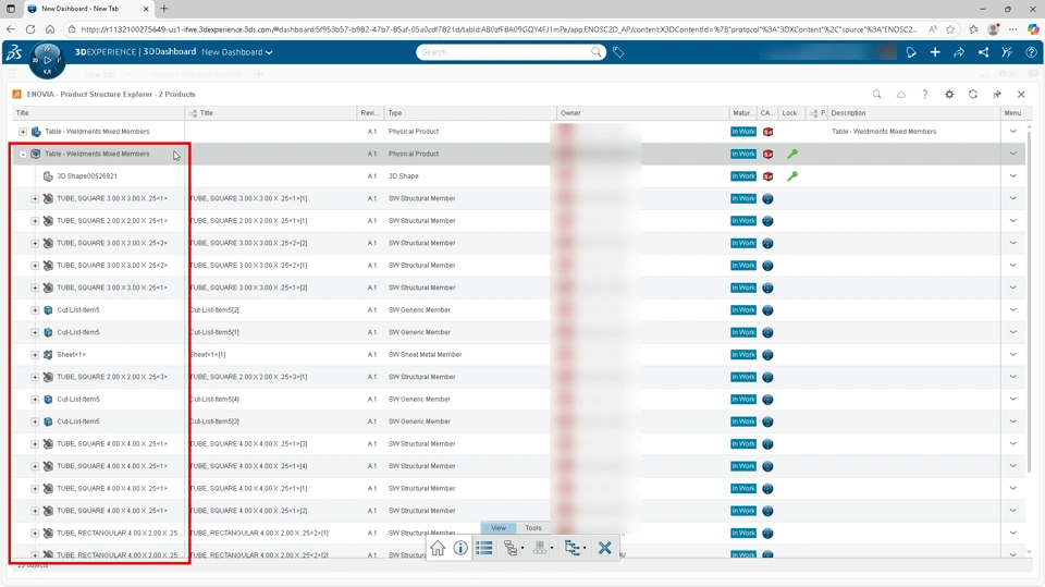 Once a cut list is published to the platform, each member is treated as an Engineering Item. This makes them accessible outside the SOLIDWORKS environment for collaboration, downstream use, and additional data management.