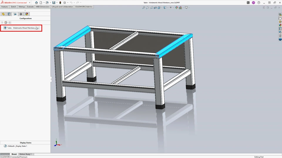 - Open the weldment part in SOLIDWORKS Design.
