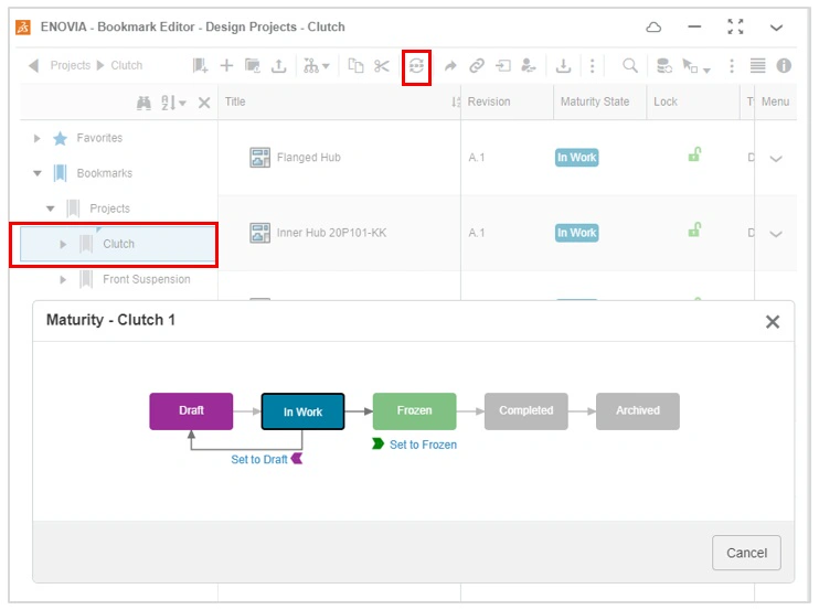 Some design teams may prefer to keep all new Bookmark folders private to each user and have them choose to share a Bookmark with other team members. In this scenario, the option Set the Maturity State to In Work should be unchecked.