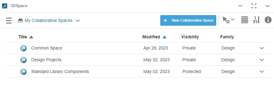 Each new customer 3DEXPERIENCE tenant is preconfigured with one collaborative space called Common Space. For a small number of designers, e.g. 1-3 users who are going to be using 3DEXPERIENCE primarily for cloud storage and basic revision control, the Common Space collaborative space can be used straight away as the default repository for content. However, be aware that by default, all new users added to a tenant are automatically added to Common Space, and the majority of companies will want full control over the collaborative space behavior, it’s recommended that at least one new collaborative space be created for storing SOLIDWORKS designs, and this is used instead of Common Space.