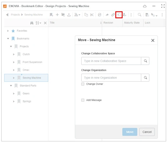 Note: If a user accidentally creates a Bookmark folder in a different Collaborative Space from the one in which they intended, it can be easily moved by selecting the Bookmark folder and using the “Move” command from the Bookmark toolbar.