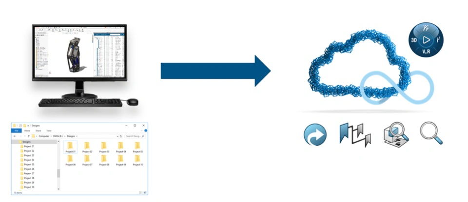 When adopting the 3DEXPERIENCE platform for the first time, it’s important for users to understand where their SOLIDWORKS design content gets stored and how the content is organized. The vast majority of new users will be familiar with organizing and navigating their files via a folder structure. The 3DEXPERIENCE platform is an environment built around managing 3D CAD data that enables users to find, filter, and organize their designs based on a flexible combination of their design and project parameters. More emphasis is placed on searching and filtering using attributes, and this approach offers many advantages over browsing a traditional folder structure.