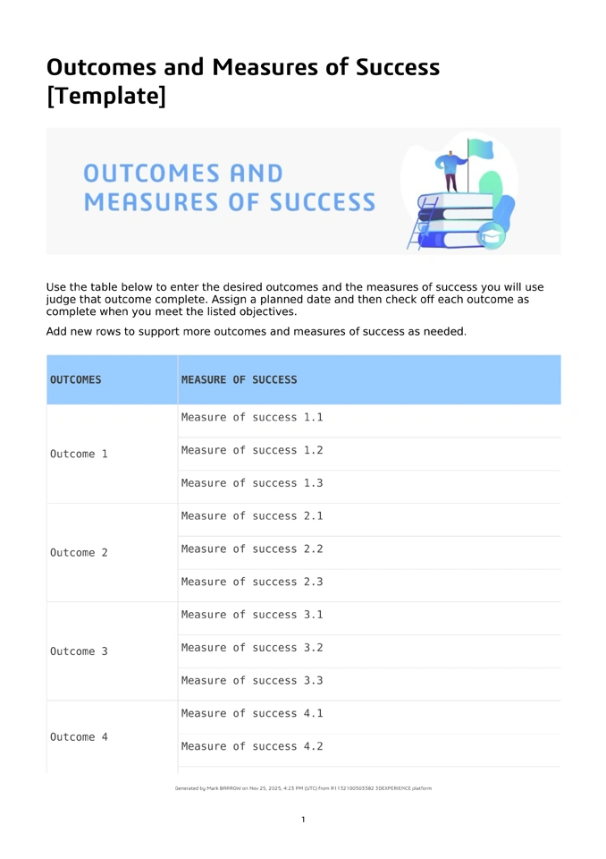 Add new rows to support more outcomes and measures of success as needed.