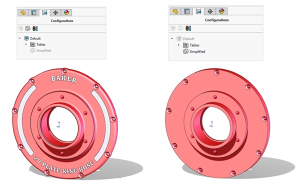 There are many scenarios in which a fully featured part model is not required and may even have a negative impact on performance. For example, large assembly designs and SOLIDWORKS Simulation studies. In these scenarios, configurations are the recommended method of controlling the level of detail in a part model. Configurations representing a de-featured version of a part are typically used to aid design in SOLIDWORKS and will not be related in any way to the final manufactured version.