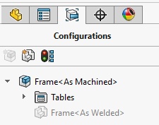 The default part template settings are configured so that configurations are automatically created to represent the model in an “As Welded” state and an “As Machined” state. Having a representation of both is the most common user requirement as these configurations provide an easy way to communication information about a weldment model in the different stages of the manufacturing process.