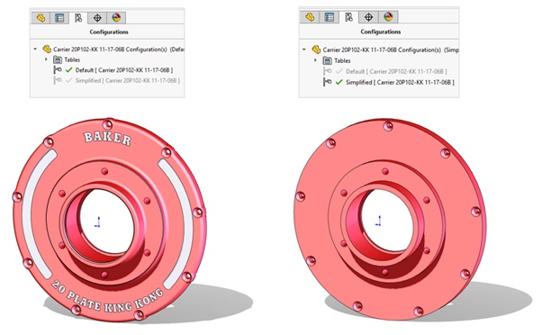It is recommended that any configurations created to represent de-featured or simplified variations of a part are created as Representation configurations, and that the configuration representing the fully-detailed model is nominated to be the Physical Product configuration.