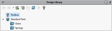 The SOLIDWORKS Design Library tab in the SOLIDWORKS Task Pane provides a central location for reusable design elements such as parts, assemblies, and sketches. Traditionally, the Design Library displays subfolders and their contents located on a local or network drive.