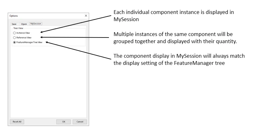 The SOLIDWORKS Design MySession settings provide the ability to configure the open and save behaviour on each user’s workstation. In order to have the best experience, it’s important that all users understand these options and how they affect the behavior of SOLIDWORKS. When teams of users are working together on the same project, it’s important that the settings chosen are consistent across all workstations to avoid unexpected behavior.