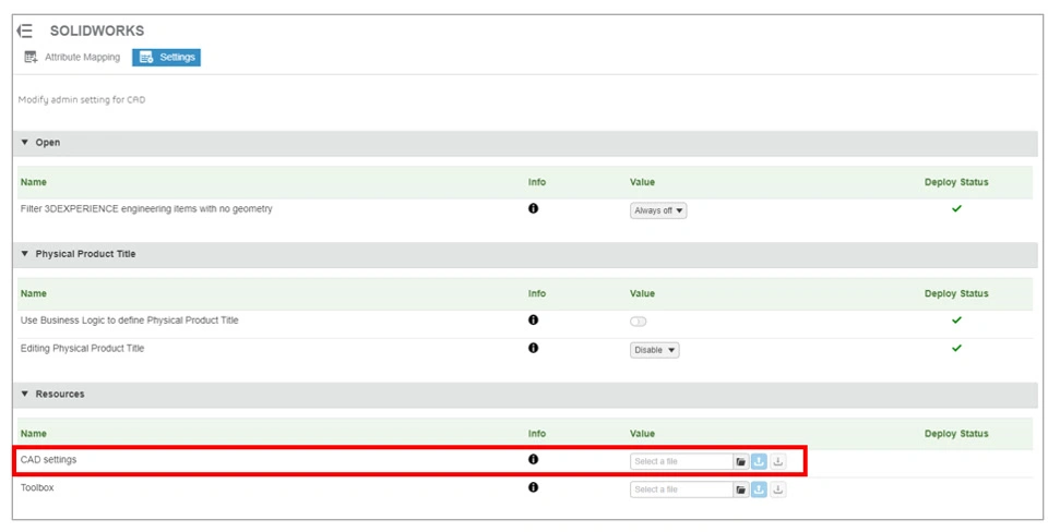 For a comprehensive overview of how to configure attribute mapping with recommended best practices, please refer to the 3DEXPERIENCE SolidPractices guide, Attribute Mapping for SOLIDWORKS.