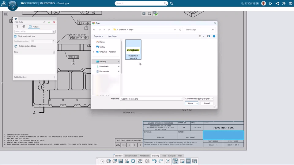 Personalize your drawings and promote your company branding with image support for drawing tables.