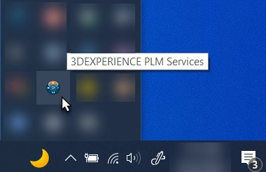 3DEXPERIENCE PLM Services is a small application (EdmServerV6.exe) that assists with the client/server XML messaging activity of the PLMCSA client. The application appears in the Windows notification area as a 3DEXPERIENCE icon with the tooltip 3DEXPERIENCE PLM Services.