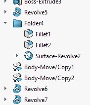 Notice that a folder will be created which will contain all features that you had selected. Currently, folder is created below feature "Revolve7"