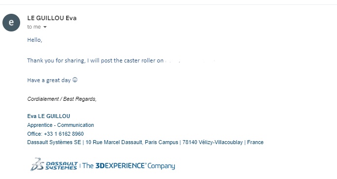 | 7. | Your DASSAULT SYSTEMES Skills (Your areas of expertise) | List of your skills SOLIDWORKS (CSWE) xDesign xShape xSheetMetal mechinedesign concept |