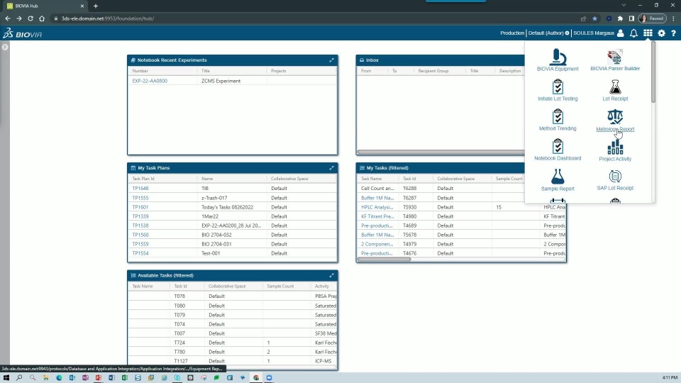 Different users (metrologist, lab manager, scientist), will want to see different things in ONELab . Some will be only interested in Equipment and their maintenance status while other will just want to know how their project is moving along. In this presentation, you'll see how with Pipeline Pilot, you can create dashboards showing live data from ONE Lab. You'll see that the only limit is your imagination and we will show you examples on how to display data according to role specific needs.