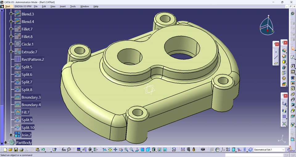 CATIA v5 How to create a classic solid part using surface modeling