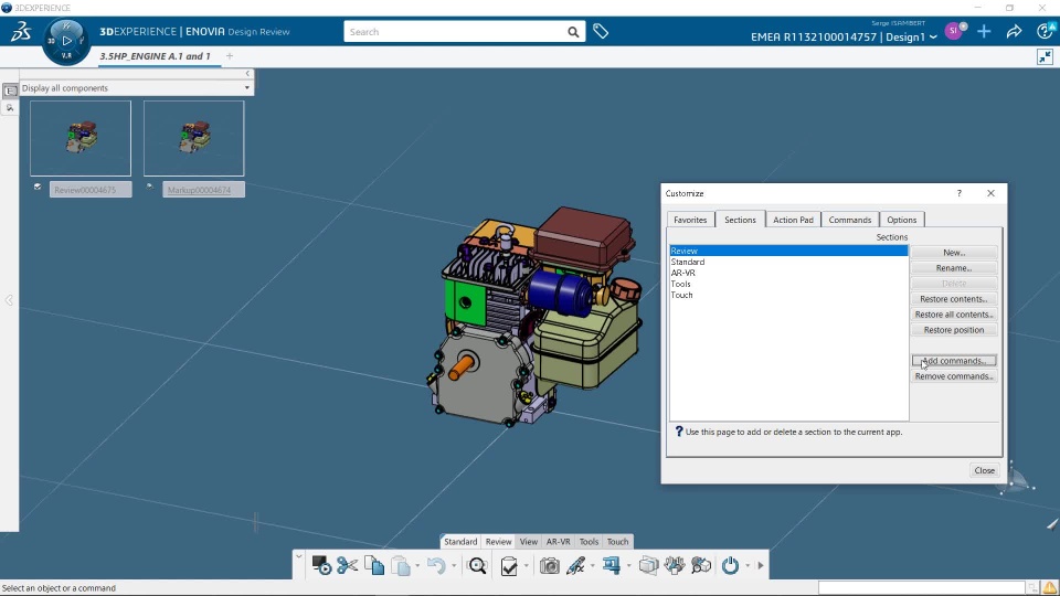 By default, in 3DEXPERIENCE CATIA, this command is not visible in the Design Review App. To add Band Analysis command to the action bar: