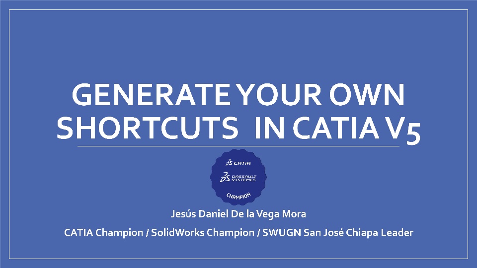 Today, I am going to share with you a presentation so that you can generate your own shortcuts in CATIA V5. I believe that this presentation will help you to reduce the time switching from a workbench, using a command or simply using a macro.