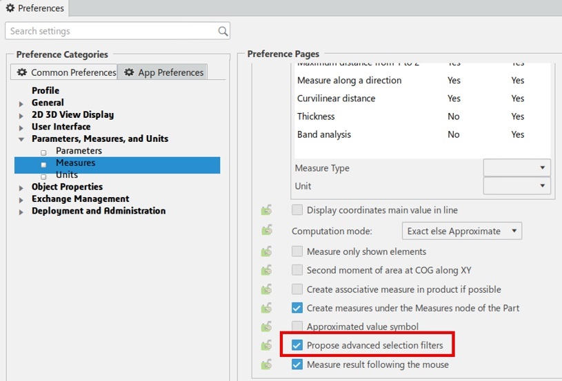 Since R2024x, by default, the advanced selection filters are not displayed any more in the Measure in Part panel:
