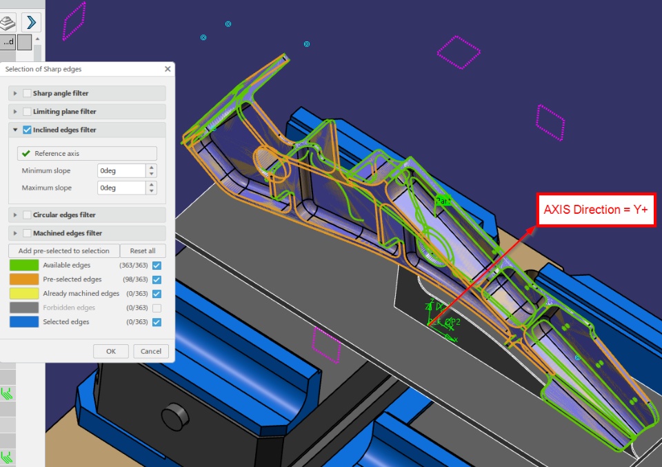 In my example, Id' like select only edges possible to machine with Y+ vector orientation (excluded edges in Y- vector). is it possible ?