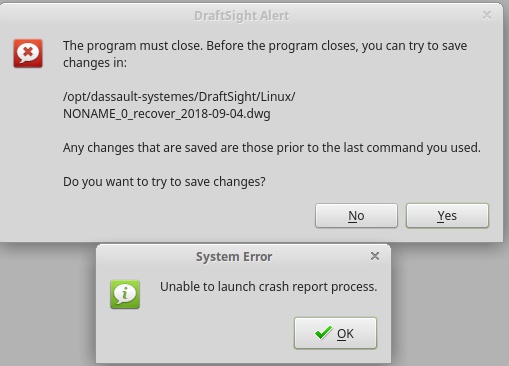 After installing DraftSight 2018 SP2 on my desktop with LM 18.3 sylvia the programm does not starting. I see an error.