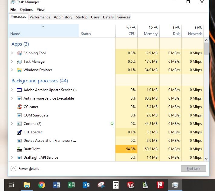 When I close DRAFTSIGHT, the process in the Task Manager doesn't close and and my CPU climbs to ...