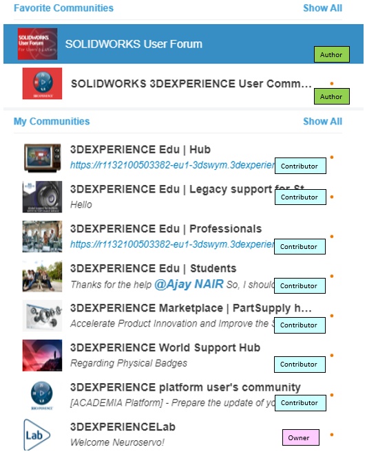 Add Author/Contributor/Owner status indicator to all of the Communities
